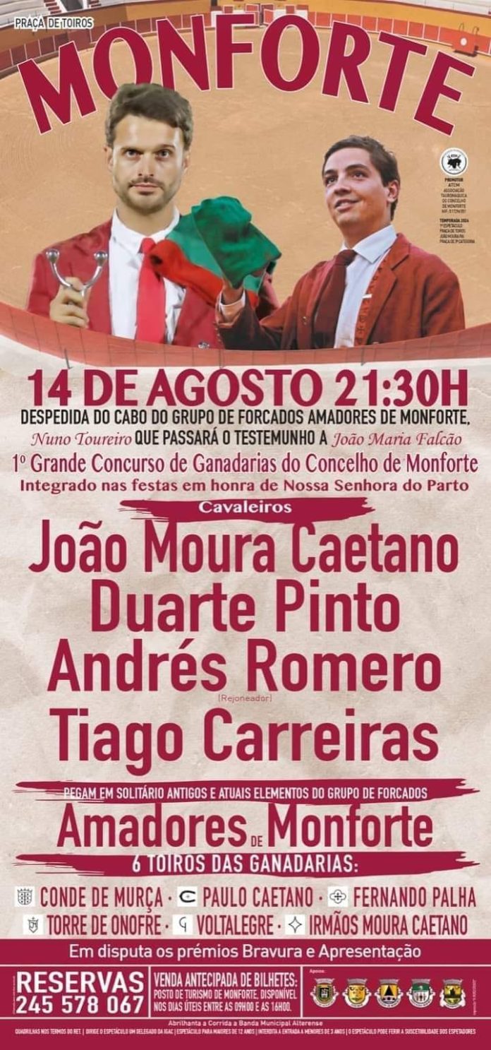 Uma corrida marcada pela mudança de cabo no Grupo de Forcados Amadores de Monforte, despedindo-se Nuno Toureiro, que passará o testemunho a João Maria Falcão.