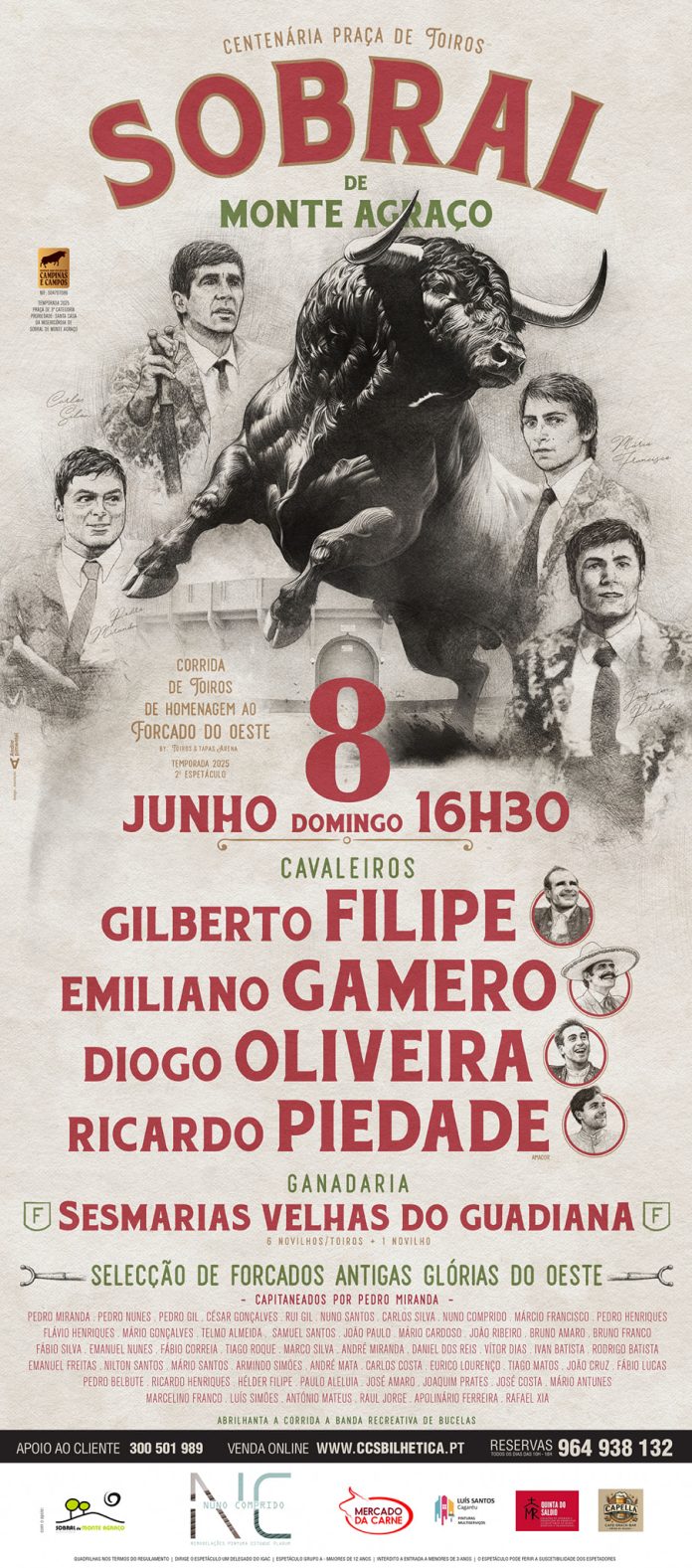 O cartel conta com a presença dos cavaleiros Gilberto Filipe, Emiliano Gamero, Diogo Oliveira e Ricardo Piedade. A ganadaria escolhida para o espetáculo será Sesmarias Velhas do Guadiana, que apresentará seis toiros e um novilho.